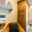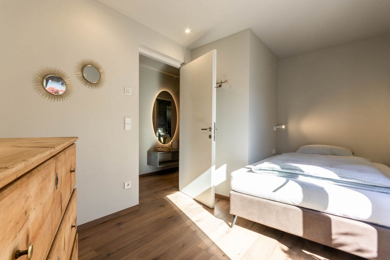 It consists of an intimate and rustic double bedroom, a living room with fully equipped open kitchen, a second spacious double bedroom with private bathroom with bathtub and views of the mountains, and is ideal for families or groups of friends who want to combine wellness and beauty.