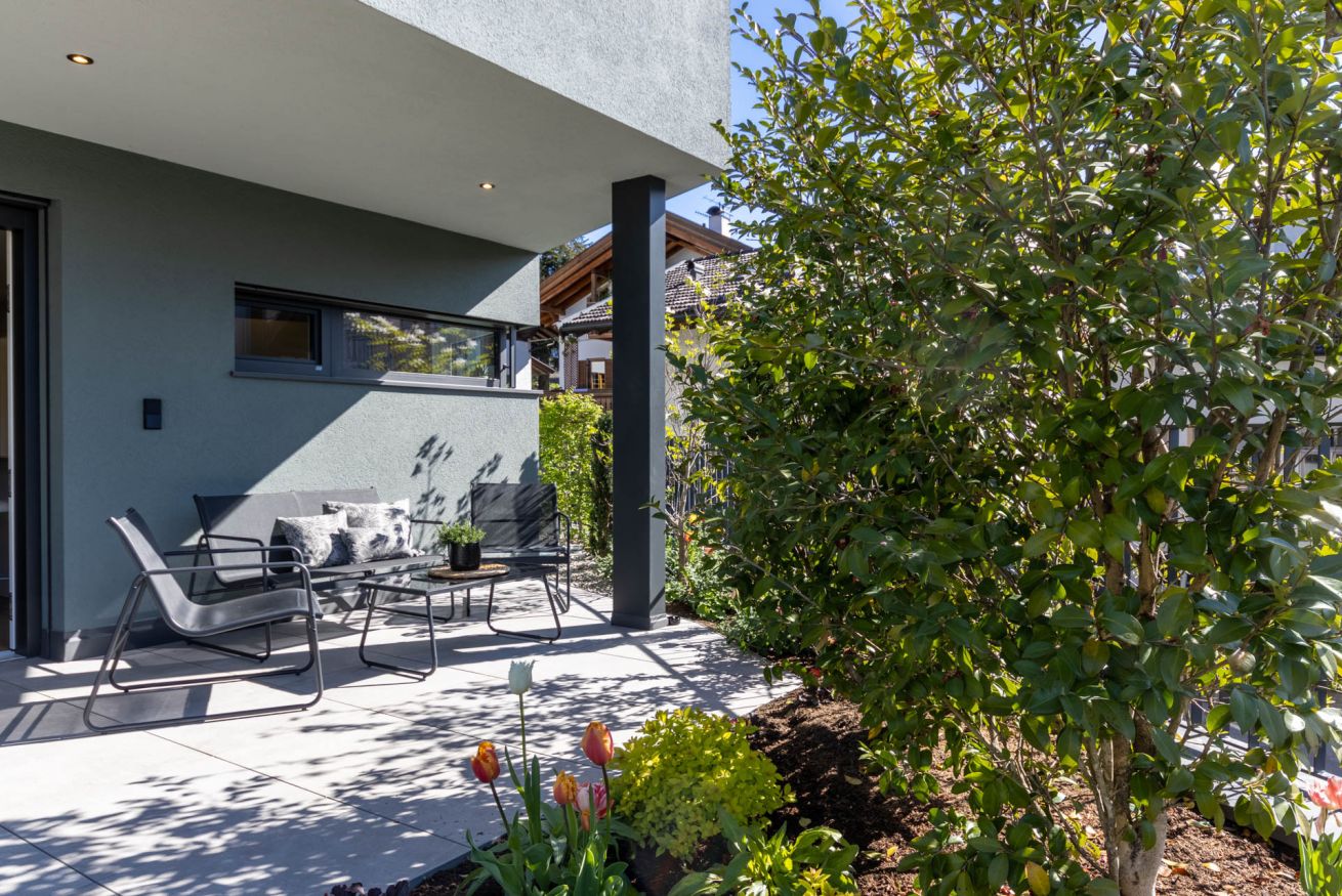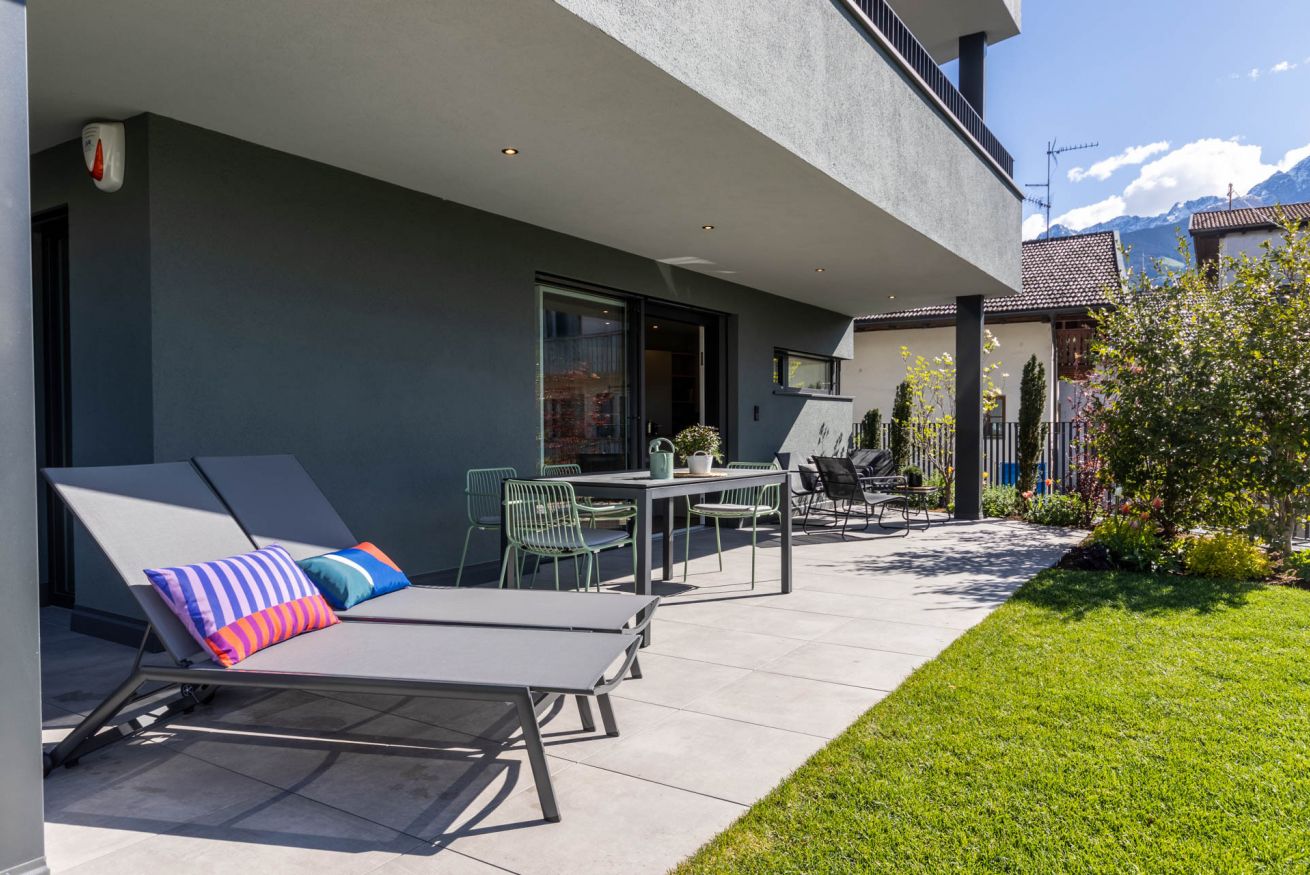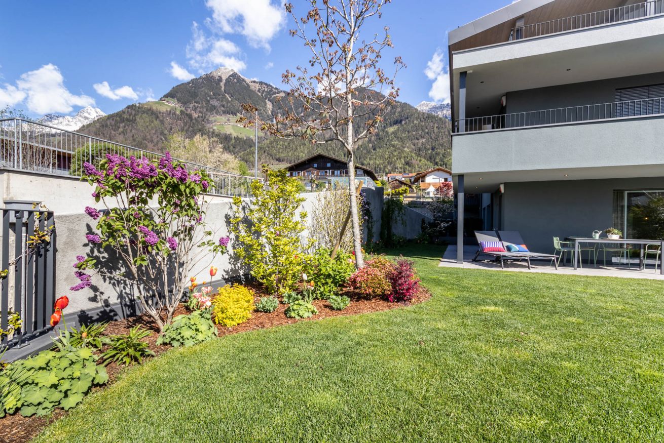 Tastefully furnished, it is comfortable and functional. The colours of the parquet floor, the furniture and the view from the living room, which opens onto a well-kept garden and a terrace equipped for moments of relaxation, as well as the view of the surrounding mountains, make it cosy and a perfect nest in which to relax after days spent exploring the area and its wonders.