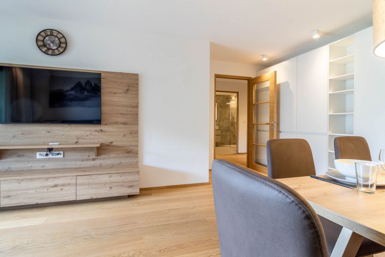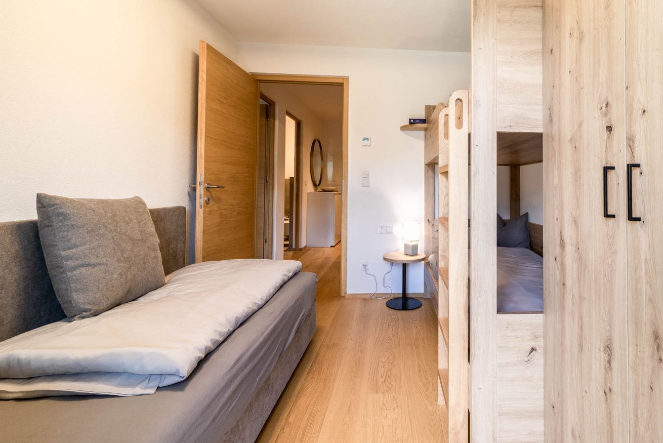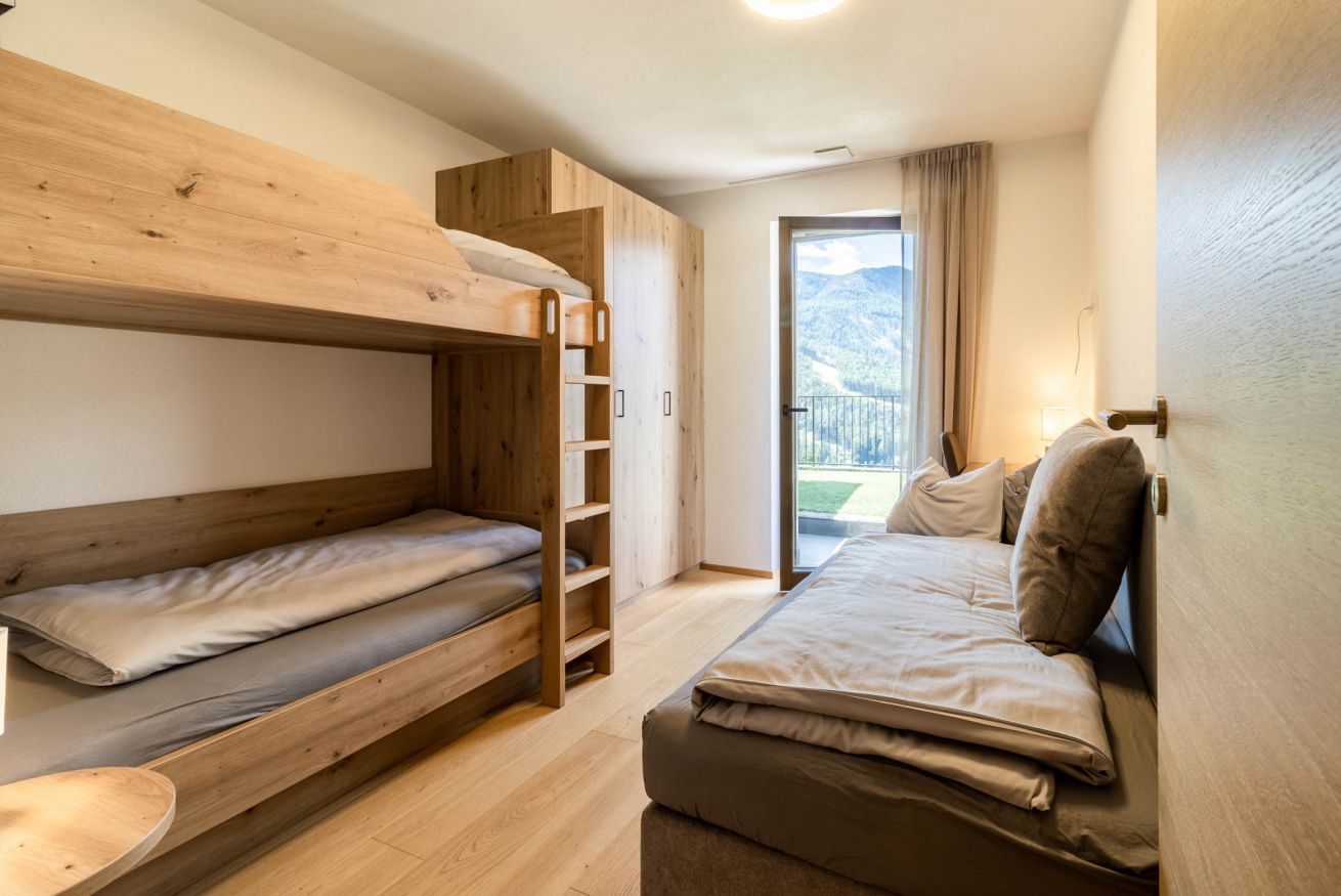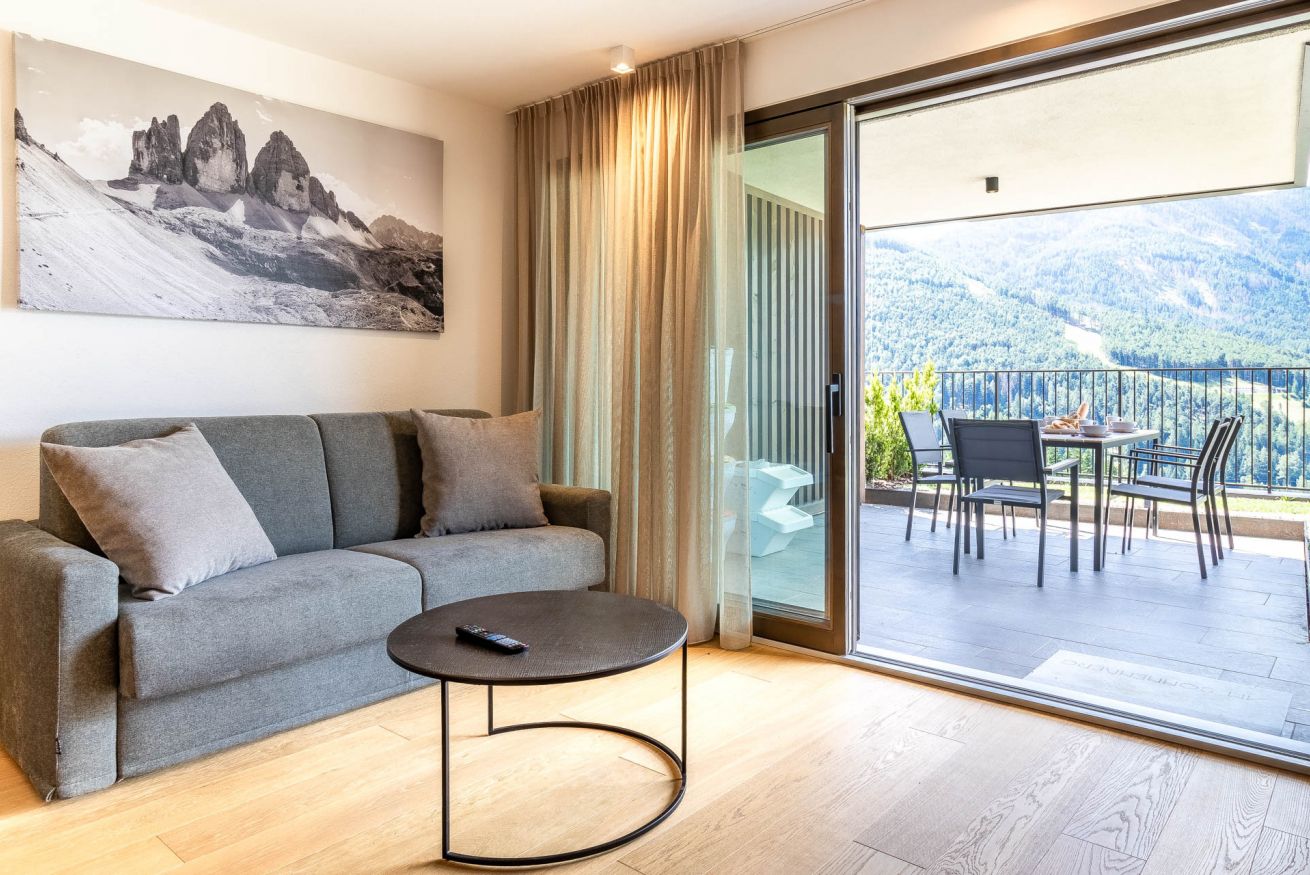 Proventus WIND è la scelta perfetta per chi cerca spazio, luce e una connessione profonda con la montagna. Situato anche lui al terzo piano dello stesso elegante edificio nuovo, questo appartamento guarda dritto verso le vette innevate di Plan de Corones, regalando ogni giorno un risveglio da cartolina. L’interno è pensato per accogliere fino a 5 persone con il massimo del comfort: due camere da letto (una matrimoniale e una con letto a castello per due e divanetto per un eventuale quinto ospite), più un ampio soggiorno con divano letto matrimoniale. La zona giorno è accogliente, moderna e piena di luce, mentre il giardinetto privato aggiunge un tocco di verde e libertà, ideale per respirare l’aria fresca delle Dolomiti in ogni stagione. Perfetto per famiglie numerose o gruppi di amici che vogliono vivere la montagna con stile e comodità.